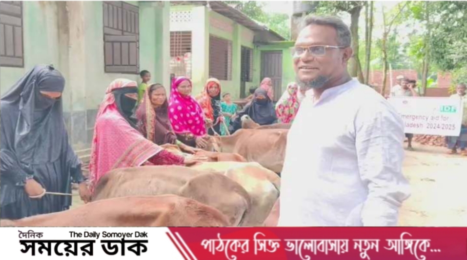 হতদরিদ্র বিধবা নারীদের স্বালম্বী করতে লালমনিরহাটে ৩০জন বিধবা হতদরিদ্র নারীর মাঝে একটি করে বখনা গরু সম্পুর্ন রুপে বিনামুল্যে বিতরন করেছে আছিয়া ফাউন্ডেশন। সোমবার (১৬ জুন) দুপুরে আদিতমারী উপজেলার সাপ্টিবাড়ি ইউনিয়নের গিলাবাড়ি এলাকায় এসব গরু বিতরন করা হয়। জানা গেছে, বাংলাদেশের গ্রামীন সমাজ ব্যবস্থায় বেশির ভাগ পরিবারের সংসার চলে পুরুষের আয়ে। সেই পুরুষ মারা গেলে উপার্জানের পথও বন্ধ হয়ে পড়ে এসব বিধবা নারীর সংসার। অনেক বিধবা নারী সংসার সচল রাখতে নিদারুন অর্থ কষ্টে ভুগেন। অর্থাভাবে এসব পরিবারের সন্তানদের লেখা পড়াও বন্ধ হয়ে পড়ে। পরিবারের উপার্জনক্ষম ব্যাক্তি স্বামীর মৃত্যুর পরে উপার্জন বন্ধ হওয়ায় দিশেহারা হয়ে পড়েন এসব নারী। তারা স্বালম্বী হওয়ার পথ খুঁজলেও অর্থাভাবে পুঁজি সংকটে অনেকেরই তা সম্ভব হয় না। এসব হতদরিদ্র বিধবা নারীদের স্বালম্বী করতে পরিবার প্রতি একটি করে বখনা বাছুর গরু সম্পর্ন রুপে বিনামুল্যে বিতরনের উদ্যোগ নেয় আছিয়া ফাউন্ডেশন। প্রথম পর্যায়ে লালমনিরহাটের আদিতমারী উপজেলার ২০ জন ও সদর উপজেলার ১০ জন বিধবা নারীকে চুড়ান্ত করে ফাউন্ডেশন। প্রতিটি বখনা বাছুরের মুল্য ৩০/৩৫ হাজার টাকা। সোমবার এসব গরু হতদরিদ্র বিধবা নারীদের হাতে তুলে দেন লালমনিরহাট জেলা জামায়াতের সেক্রেটারী লালমনিরহাট ২ আসনের জামায়াতের প্রার্থী অ্যাডভোকেট ফিরোজ হায়দার লাভলু। সুফল ভোগি সারপুকুর রইসবাগ এলাকার জোসনা বেগম বলেন, ৩ সন্তান রেখে ৮ বছর আগে স্বামী মারা গেছে। সেই থেকে অন্যের জমিতে দিনমজুরী দিয়ে সন্তানদের পড়ালেখা করাচ্ছি। আয় না হলে না খেয়েও থাকতে হয়েছে। গরু পোষে(লালন পালন) নিজের সংসার উন্নতি করার স্বপ্ন দীর্ঘ দিনের। কিন্তু টাকার অভাবে গরু কিনতে পারি নি। আজকে বিনামুল্যে গরু পেয়েছি। সন্তানের মত যত্ন করে গরু দিয়ে ক্ষুদ্র খামাড় গড়ে তুলব ইনশা’আল্লাহ। এ উপহার কোটি টাকার সম্পদ আমাদের কাছে। গরু বিতরন শেষে জামায়াত নেতা অ্যাডভোকেট ফিরোজ হায়দার লাভলু বলেন, স্বামী নামক উপার্জনক্ষম ব্যাক্তির মৃত্যুর পরে ওই পরিবার শোকের সাথে আর্থিক সংকটে ভুগে। অভাব নামক দানবের সাথে নিত্য লড়াই করে চলতে হয় তাদের। আমরা আছিয়া ফাউন্ডেশনের সহায়তায় এমন হতদরিদ্র বিধবা নারীদের স্বালম্বী করতে বিনামুল্যে একটি করে বখনা বাছুর উপহার দিয়েছি। যা লালন পালন করে ধিরে ধিরে ক্ষুদ্র থেকে মাঝারি ধরনের খামাড় গড়ে উদ্যোক্তা হতে পারেন।