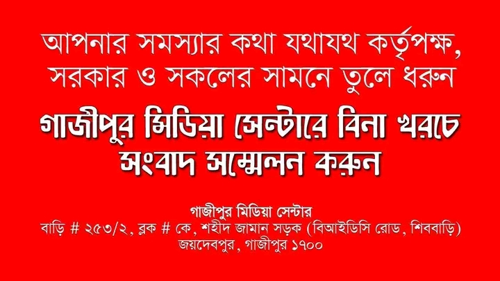 গাজীপুর মিডিয়া সেন্টারে আসুন! বিনা খরচে সংবাদ সম্মেলন করুন।