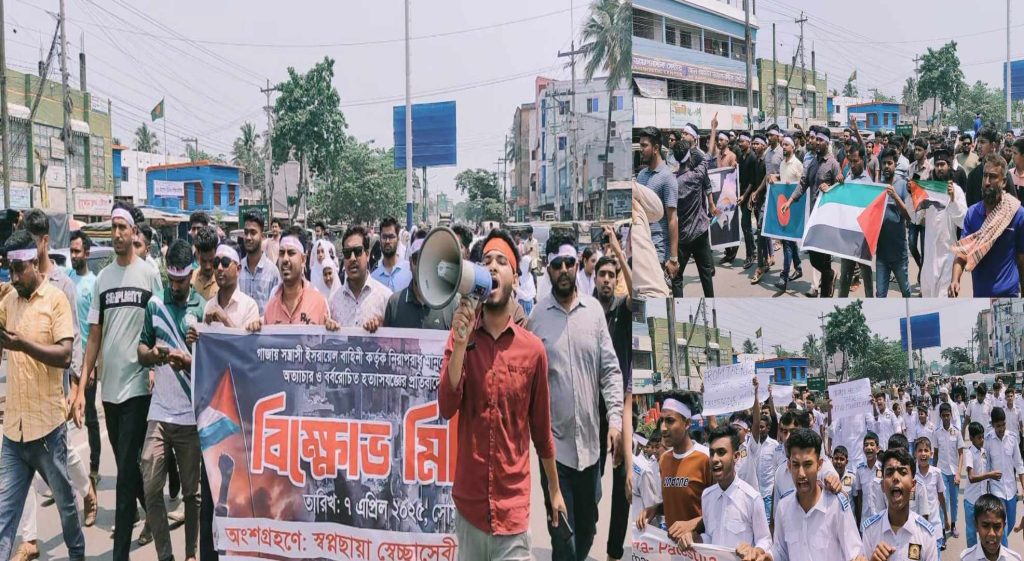 ফিলিস্তিনের গাজায় ইসরায়েলি আগ্রাসনের প্রতিবাদে দেশজুড়ে সব শিক্ষাপ্রতিষ্ঠানে সাধারণ ধর্মঘটের ডাক দিয়েছে কয়েকটি বেসরকারি বিশ্ববিদ্যালয়ের কয়েকজন শিক্ষার্থী। রোববার বিকেলে জাতীয় প্রেসক্লাবের সামনে সংবাদ সম্মেলন করে এই ধর্মঘটের ডাক দেওয়া হয়। সংবাদ সন্মেলনে শিক্ষার্থীরা জানান, সোমবার তাঁরা কোনো ধরনের একাডেমিক কার্যক্রমে অংশ নেবেন না। তাঁদের দাবি, ইসরায়েলের এই গণহত্যা বন্ধের পাশাপাশি তাদের বিরুদ্ধে মুসলিম বিশ্বকে জোরালো অবস্থান নিতে হবে। শিক্ষার্থীদের এই দাবী’র প্রতি সমর্থন দিয়ে বেনাপোলে ছাত্র-জনতা ও সাধারণ মানুষ এক বিক্ষোভ কর্মসূচি’র ডাক দেয়। এ কর্মসূচিকে সফল করতে সোমবার সকাল ১১টার দিকে বেনাপোল শহরের কেন্দ্রে অবস্থিত বেনাপোল-যশোর মহাসড়ক সংলগ্ন “নুর শপিং কমপ্লেক্স” এর সম্মুখে সবাইকে একত্র হওয়ার আহবান জানানো হয়। বিক্ষোভ সমাবেশে যুক্ত হতে বেনাপোল সহ এর আশপাশের স্কুল,কলেজের শিক্ষার্থী ও সামাজিক সংগঠন সহ শত শত মানুষ সকাল থেকে আসতে শুরু করে সমাবেশ স্থলে। সমাবেশ স্থলে বক্তারা বলেন, ফিলিস্তিন রাষ্ট্রের অস্তিত্ব কখনো বিলীন হবে না উল্লেখ করে গাজায় যা হচ্ছে, এটা সম্পূর্ণ যুদ্ধাপরাধ। গাজাকে নিজেদের দখলে নিতে ইসরায়েল এই নৃশংস হত্যাযজ্ঞ চালাচ্ছে। কিন্তু এটা স্পষ্ট, ফিলিস্তিন রাষ্ট্রকে সব সময় ফিলিস্তিন, গাজাকে গাজা হিসেবেই মানুষ চিনবে। বিক্ষোভ সমাবেশ শেষে একটি বিক্ষোভ মিছিল বের করা হয়। মিছিলটি বেনাপোল বন্দর প্রদক্ষিন শেষে পুণরায় বেনাপোলে এসে শেষ হয়। এতে নেতৃত্ব দেন বৈষম্য বিরোধী ছাত্র আন্দোলনের বেনাপোল ও শার্শার অন্যতম নেতা শ্রদ্ধেয় শিক্ষক স্যার আব্দুল মান্নান (অবসর প্রাপ্ত)। মিছিলটিতে বাংলাদেশের পতাকা এবং ফিলিস্তিনিদের পতাকা নিয়ে ইসরায়েল বিরোধী বিভিন্ন শ্লোগান তুলে ভর্ৎসনা জানানো হয়।