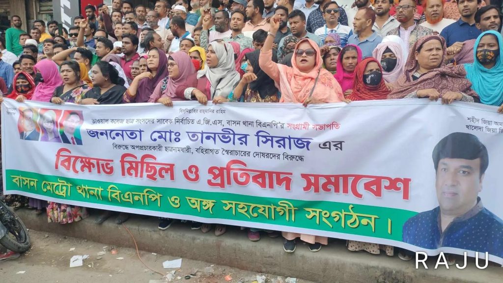কথিত আওয়ামী লীগের নিষিদ্ধ সংগঠন ছাত্রলীগের দোসরদের গ্রেফতারের দাবি ও বাসন মেট্রো থানা বিএনপির সভাপতি তানভীর সিরাজের বিরুদ্ধে অপপ্রচারের প্রতিবাদে বিক্ষোভ মিছিল করেছে বাসন থানা বিএনপি ও অঙ্গসংগঠনের নেতৃবৃন্দ।