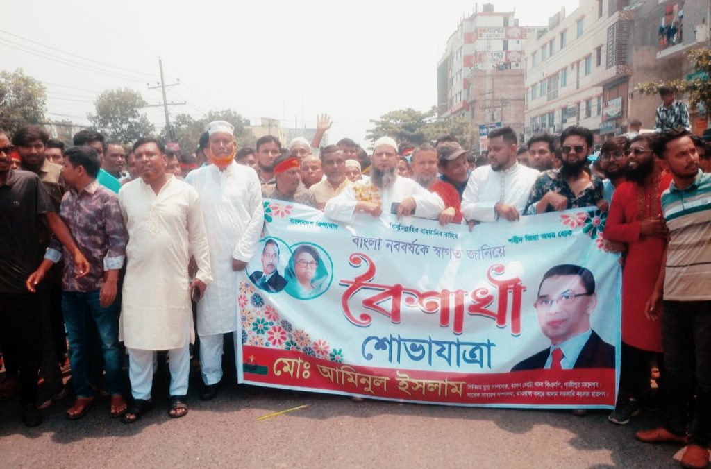 গাজীপুর মহানগর বিএনপির অংগ সংগঠন সহ সকল সংগঠনের উদ্যোগে আজ ১৪/০৪/২৫ ইং রোজ সোমবার সকাল ১১.০০ ঘটিকায় গাজীপুর চৌরাস্তার ভাওয়াল বদরে আলম সরকারি কলেজের মাঠে বিএনপি’র সকল অংগসংগঠন বৈশাখী শোভাযাত্রা অনুষ্ঠান পালন করেন। উক্ত বৈশাখী শোভাযাত্রা অনুষ্ঠানে বাসন মেট্রো থানা জিয়া সৃতি সংসদ বলিষ্ঠ ভাবে যোগদান করেন। বাসন মেট্রো থানা জিয়া সৃতি সংসদের (সভাপতি) মোঃ শফিকুল ইসলাম, (সহ-সভাপতি) মোঃ নাছির দেওয়ান, (সাধারন সম্পাদক) মোঃ ইসমাইল হোসেন, (সহ সাধারন সম্পাদক) মোঃ মোতালেব হোসেন, (সাংগঠনিক সম্পাদক) মুকুল হোসেন, (কোষাধ্যক্ষ) মোঃ কাদির হাজী, মোঃ খলিল গায়েন সহ কমিটির সকল সদস্য ও এলাকার গণ্যমান্য ব্যক্তি বর্গ নিয়ে গাজীপুর মহানগর বিএনপি’র বৈশাখী শোভাযাত্রায় অংশ গ্রহন করেন। উক্ত বৈশাখী শোভাযাত্রায় প্রধান অলংকার হিসেবে দায়িত্ব পালন করেন গাজীপুর মহানগর বিএনপি’র (সভাপতি) হাজ্বী শওকত সরকার, বাসন মেট্রো থানা বিএনপি’র (সভাপতি) আলহাজ্ব তানভির সিরাজ ও সাবেক এ জি এস ভাওয়াল বদরে আলম সরকারি কলেজ ও গাজীপুর মহানগরের সকল ওয়ার্ডের ও সকল থানা কমিটির নেতৃবৃন্দ সহ মহিলা বিএনপি’র সংগঠনের নেতৃবৃন্দরা ও সাধারন জনগন। গাজীপুর মহানগর বিএনপি’র অয়োজিত বৈশাখী শোভাযাত্রা কলেজ মাঠ থেকে রেলি আকারে নাওজোড় এসে শেষ হয়। এই বৈশাখী শোভাযাত্রায় অংশ গ্রহন করা সকল নেতৃবৃন্দ সহ সাধারণ জনগণ অত্যান্ত আনন্দ উল্যাস করেন। এটা গাজীপুরে এই প্রথম এ ভাবে রাজনৈতিক ভাবে বৈশাখী অনুষ্ঠান পালন করা হয়।