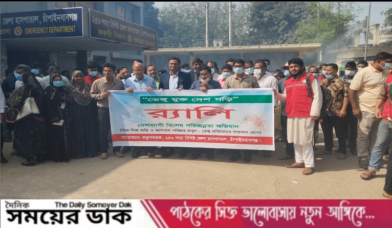 চাঁপাইনবাবগঞ্জে জেলা প্রশাসনের উদ্যোগে পরিচ্ছন্নতা অভিযান ও মশক নিধন কার্যক্রমের উদ্বোধন করা হয়েছে। আজ শনিবার (১৪ মার্চ) সকাল ১০টায় শহরের ২৫০ শয্যা বিশিষ্ট জেলা সদর হাসপাতাল মোড় থেকে পুরাতন বাজার পর্যন্ত এলাকায় এ কার্যক্রমের উদ্বোধন করেন চাঁপাইনবাবগঞ্জ জেলা প্রশাসক (ভারপ্রাপ্ত) উজ্জ্বল কুমার ঘোষ। উদ্বোধন অনুষ্ঠানে উপস্থিত ছিলেন অতিরিক্ত জেলা প্রশাসক (সার্বিক) মোঃ নাকিব হাসান তরফদার, অতিরিক্ত জেলা প্রশাসক (রাজস্ব) ফয়সাল রাযহান,সদর উপজেলার নির্বাহী অফিসার মারুফ আফজাল রাজন,চাঁপাইনবাবগঞ্জ সিভিল সার্জন ডা. এ কে এম শাহাব উদ্দীন, চাঁপাইনবাবগঞ্জ ২৫০ শয্যা বিশিষ্ট জেলা সদর হাসপাতালের তত্ত্বাবধায়ক ডা. মুহাম্মদ মশিউর রহমান, সদর হাসপাতালের আরএমও ডাঃ আব্দুস সামাদ, ,অতিরিক্ত জেলা ম্যাজিস্ট্রেট মোঃ আনিসুর রহমান, সহকারী কমিশনার ও এক্সিকিউটিভ ম্যাজিস্ট্রেট অরুপ কুমার দাস, দি চাঁপাইনবাবগঞ্জ চেম্বার অব কমার্স অ্যান্ড ইন্ডাস্ট্রির সহ-সভাপতি মোঃ খাইরুল ইসলাম, জেলা সমবায় অফিসার (ভারপ্রাপ্ত) মোঃ মোখলেছুর রহমান, চাঁপাইনবাবগঞ্জ পৌরসভার পৌর নির্বাহী কর্মকর্তা মোঃ মামুন-অর – রশীদ, কৃষি সম্প্রসারণ অধিদপ্তরের মনিটরিং অফিসার মোঃ জহুরুল ইসলামসহ সংশ্লিষ্ট বিভিন্ন দপ্তরের