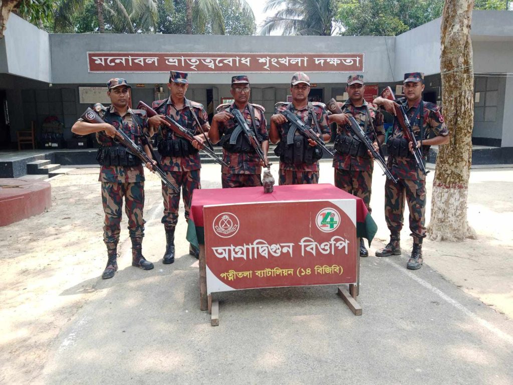 নওগাঁর পত্নীতলা থেকে অদ্য ০৩ মে ২০২৫ তারিখ আনুমানিক ১১৪০ ঘটিকায় পত্নীতলা ব্যাটালিয়ন ১৪ বিজিবি এর অধীনস্থ আগ্রাদ্বিগুন বিওপির দায়িত্বপূর্ণ এলাকায় সীমান্ত পিলার ২৫৭/৩-আর হতে আনুমানিক ০৩ কিঃমিঃ বাংলাদেশের অভ্যন্তরে জিআর-৭১৩৮৪৮, মানচিত্র-৭৮সি/১২ নলপুকুর নামক স্থানে পুকুরে মাছ ধরার সময় ০১টি পুরোনো ভাঙ্গা কষ্টি পাথরের মূর্তি দেখতে পায়। পরবর্তীতে স্থানীয় এলাকাবাসী বিজিবি’কে অবগত করলে তাৎক্ষণিক সুবেদার মোঃ তৌফিকুল ইসলাম এর নেতৃত্বে ০৬ সদস্যের একটি বিশেষ টহল দল উক্ত স্থানে গিয়ে স্থানীয় জনগণের সহায়তায় কষ্টি পাথরের মূর্তিটি পুকুর থেকে উদ্ধার করেন। পরবর্তীতে নজিপুর জুয়েলারী সমিতি কর্তৃক পরিক্ষা নিরীক্ষা করে দেখা যায় যে, মূর্তিটি কষ্টি পাথর নয়। উক্ত উদ্ধারকৃত পাথরের মূর্তির ওজন ১.৬৬০ কেজি যার সিজার মূল্য- ধরা হয়েছে ৮৩,০০০= (তিরাশি হাজার) টাকা। নওগাঁ ও জয়পুরহাট সীমান্তে গরু,মাদক পাচার, অবৈধ সীমান্ত পারাপার এবং চোরাচালানের বিরুদ্ধে সর্বদা সর্তক।