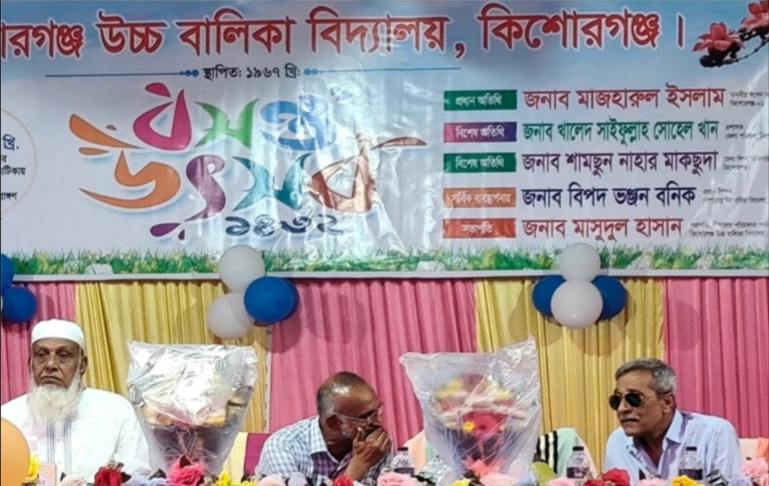 বসন্তের উদাস হাওয়ায় আজ মিশে ছিল আগামীর স্বপ্ন আর কিশোরী প্রাণের উচ্ছ্বাস। নীল আকাশে রোদের ঝিলিক আর কিশোরগঞ্জ উচ্চ বালিকা বিদ্যালয়ের আঙিনায় বাসন্তী সাজ—সব মিলিয়ে এক অপার্থিব সৌন্দর্যের অবতারণা হয় আজ বৃহস্পতিবার (৯ এপ্রিল ) সকালে। ১৯৬৭ সালে প্রতিষ্ঠিত এই প্রাচীন বিদ্যাপীঠের প্রাঙ্গণে অনুষ্ঠিত হলো ‘বসন্ত উৎসব ১৪৩২’। অনুষ্ঠানের সূচনালগ্নেই ছিল ঐতিহ্যের ছোঁয়া। বিদ্যালয়ের শিক্ষার্থীরা যখন ফুলের পাপড়ি ছিটিয়ে আর সুমধুর স্বাগতম সঙ্গীতের মূর্ছনায় অতিথিদের বরণ করে নিচ্ছিল, তখন মনে হচ্ছিল যেন কোনো এক নন্দনকানন নেমে এসেছে আখড়া বাজারের প্রাণকেন্দ্রে। লাল-হলুদ শাড়িতে সজ্জিত ছাত্রীদের মনোজ্ঞ নৃত্যশৈলী উপস্থিত সকলকে বিমোহিত করে রাখে দীর্ঘক্ষণ। অনুষ্ঠানে কিশোরগঞ্জ-১ আসনের মাননীয় সংসদ সদস্য মোঃ মাজহারুল ইসলাম প্রধান অতিথি হিসেবে উপস্থিত থাকার কথা থাকলেও, জাতীয় সংসদের জরুরি অধিবেশনের কারণে তিনি সশরীরে উপস্থিত হতে পারেননি। তবে তার অনুপস্থিতিতেও অনুষ্ঠানের মর্যাদা অক্ষুণ্ণ ছিল। প্রধান অতিথির আসন অলংকৃত করেন কিশোরগঞ্জ জেলা বিএনপির সাবেক সভাপতি ও বিশিষ্ট শিক্ষাবিদ সাবেক অধ্যক্ষ মোঃ হাবিবুর রহমান ভূইয়াঁ। বিশেষ অতিথি হিসেবে উপস্থিত থেকে অনুষ্ঠানকে মহিমান্বিত করেন কিশোরগঞ্জ জেলা পরিষদের প্রশাসক খালেদ সাইফুল্লাহ সোহেল খান, জেলা শিক্ষা অফিসার শামছুন নাহার মাকছুদা। অনুষ্ঠানে সভাপতিত্ব করেন বিদ্যালয়ের পরিচালনা পর্ষদের বর্তমান সভাপতি মাসুদুল হাসান। পুরো আয়োজনটির প্রাণভোমরা ও সার্বিক ব্যবস্থাপনায় ছিলেন বিদ্যালয়ের দক্ষ প্রধান শিক্ষক বিপদ ভঞ্জন বনিক। অনুষ্ঠানে আরো উপস্থিত ছিলেন বিভিন্ন স্কুলের শিক্ষকগণ, শহরের বিশিষ্ট ব্যক্তিবর্গ এবং বিভিন্ন ইলেকট্রনিক ও প্রিন্ট মিডিয়ার সাংবাদিকবৃন্দ। উৎসবের আনন্দের মাঝেও শিক্ষার্থীরা ভুলে যায়নি তাদের প্রাণের বিদ্যালয়ের প্রয়োজনের কথা। অনুষ্ঠান চলাকালীন তারা প্রধান ও বিশেষ অতিথিদের দৃষ্টি আকর্ষণ করে বিভিন্ন দাবি-দাওয়া সম্বলিত সুদৃশ্য প্ল্যাকার্ড প্রদর্শন করে। ছাত্রীদের দুচোখে ছিল একটি আধুনিক বিদ্যাপীঠের স্বপ্ন। তাদের অন্যতম প্রধান দাবি ছিল একটি বহুতল বিশিষ্ট আধুনিক একাডেমি ভবন নির্মাণ এবং বিদ্যালয়ের প্রবেশপথে একটি আকর্ষণীয় ও দৃষ্টিনন্দন প্রধান ফটক তৈরি। প্রধান অতিথির বক্তব্যে মোঃ হাবিবুর রহমান ভূইয়াঁ বলেন, “কিশোরগঞ্জ উচ্চ বালিকা বিদ্যালয় এ অঞ্চলের নারী শিক্ষার বাতিঘর। এই প্রতিষ্ঠানের সার্বিক উন্নয়নে আমার পক্ষ থেকে সব ধরনের জোরালো প্রচেষ্টা অব্যাহত থাকবে।” জেলা পরিষদ প্রশাসক খালেদ সাইফুল্লাহ সোহেল খান শিক্ষার্থীদের দাবির প্রতি একাত্মতা প্রকাশ করে 