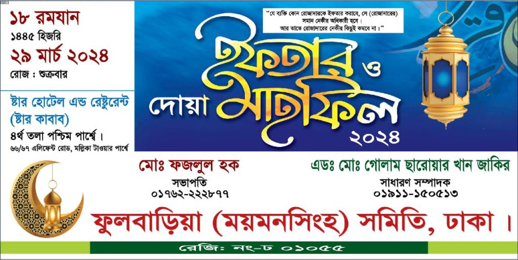 ফুলবাড়িয়া (ময়মনসিংহ) সমিতি, ঢাকা কর্তৃক ইফতার ও দোয়া মাহফিল-২০২৪