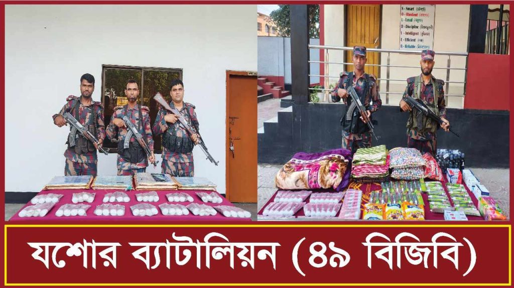 বেনাপোল সীমান্ত থেকে বিজিবির অভিযানে ভারতীয় শাড়ি কম্বল সহ বিভিন্ন পন্য আটক