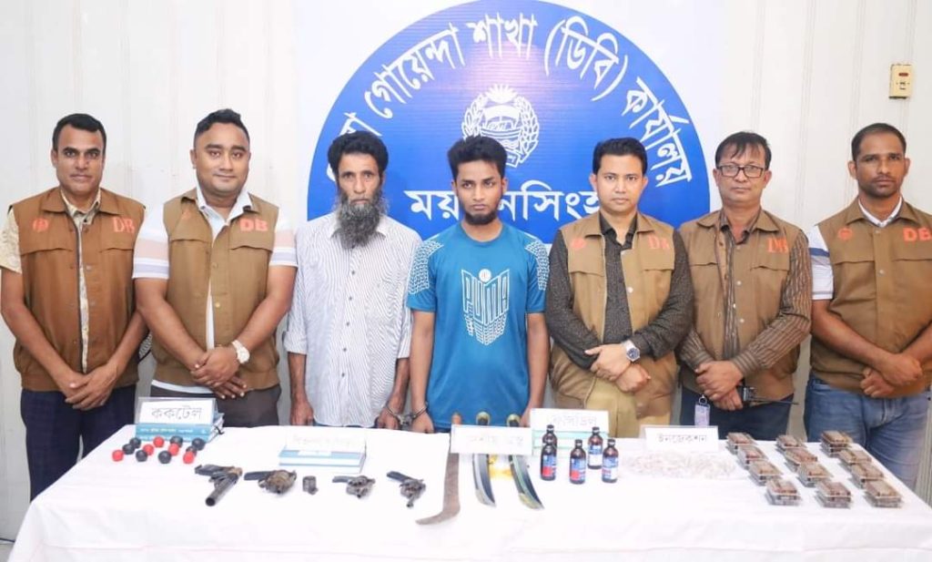 স্টাফ রিপোর্টার(ময়মনসিংহ): ময়মনসিংহে গোয়েন্দা পুলিশের (ডিবি) অভিযানে বিপুল পরিমাণ অস্ত্র ও মাদকদ্রব্য উদ্ধার করা হয়েছে। এ সময় দুইজনকে গ্রেফতার করে পুলিশ। উদ্ধারকৃত আগ্নেয়াস্ত্রের একটি পিস্তল, ৩টি রিভলবার, ৪৭ টি ককটেল, ৩টি ধারালো অস্ত্র, ২৭৯ নেশাজাতীয় ইনজেকশন ও ৫ বোতল ফেন্সিডিল রয়েছে। দায়ের করে আসামীদ্বয়কে বিজ্ঞ আদালতে সোপর্দ্দ করা হয়েছে।